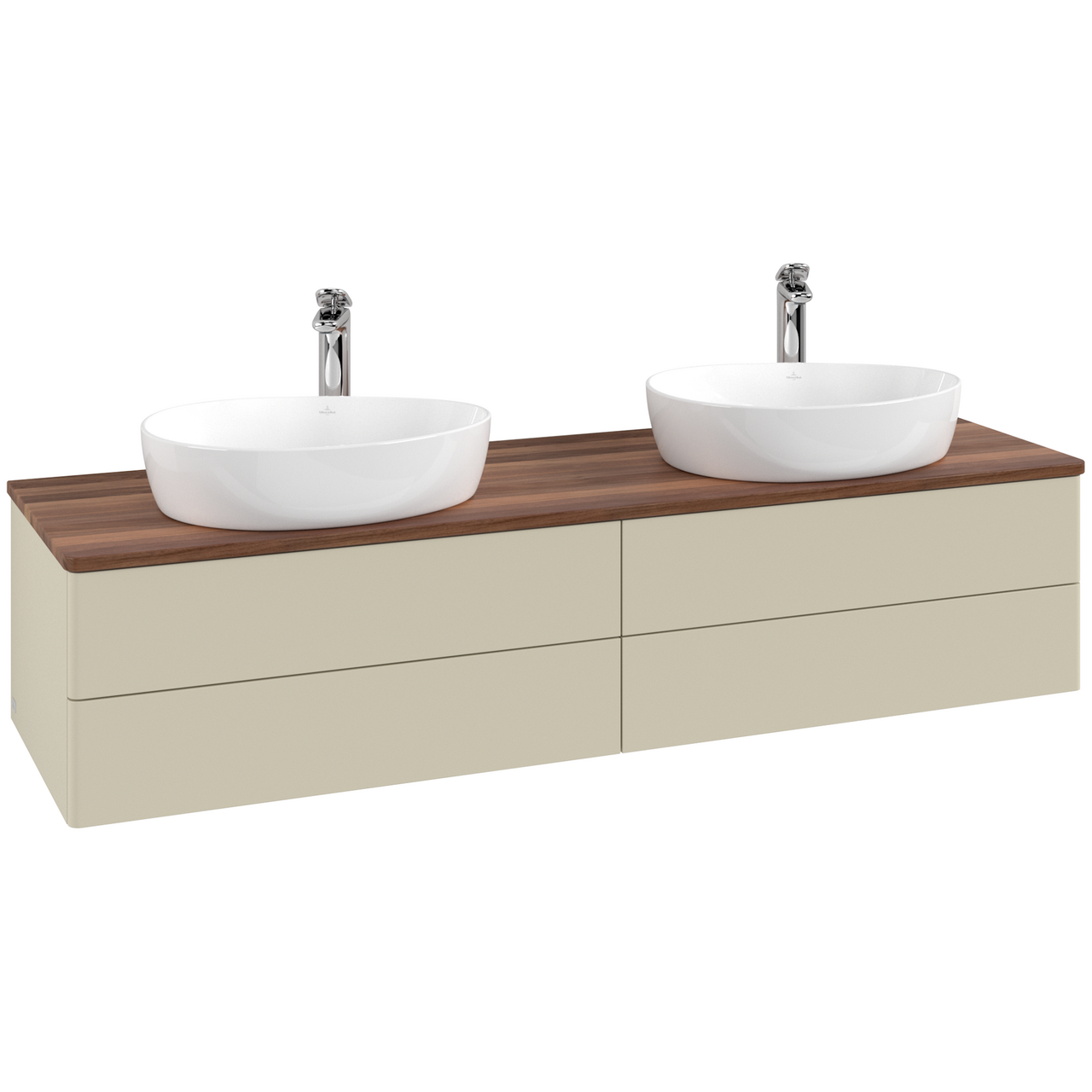 V&b antao servantskap 4 skuffer glatt 1600x360x500 for 2 serv. m/kranhull silkegrå/valnøtt