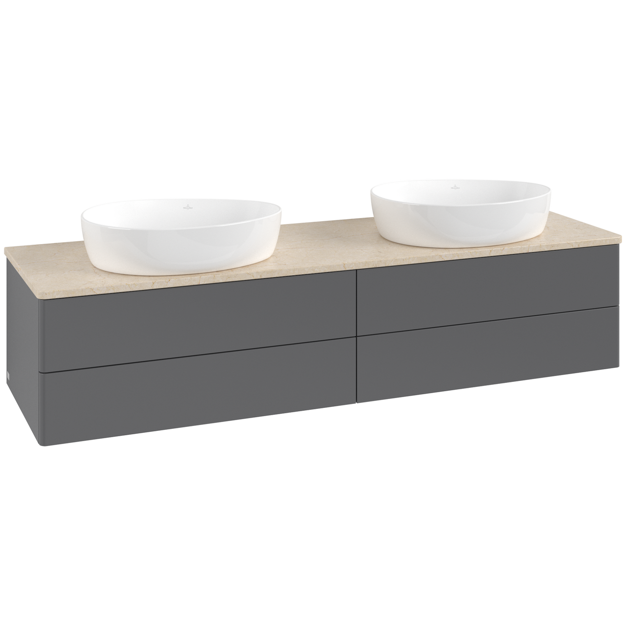 V&B ANTAO SERVANTSKAP 4 SKUFFER GLATT 1600X360X500 FOR 2 SERV. U/KRANHULL ANTRASITT/CRÉME