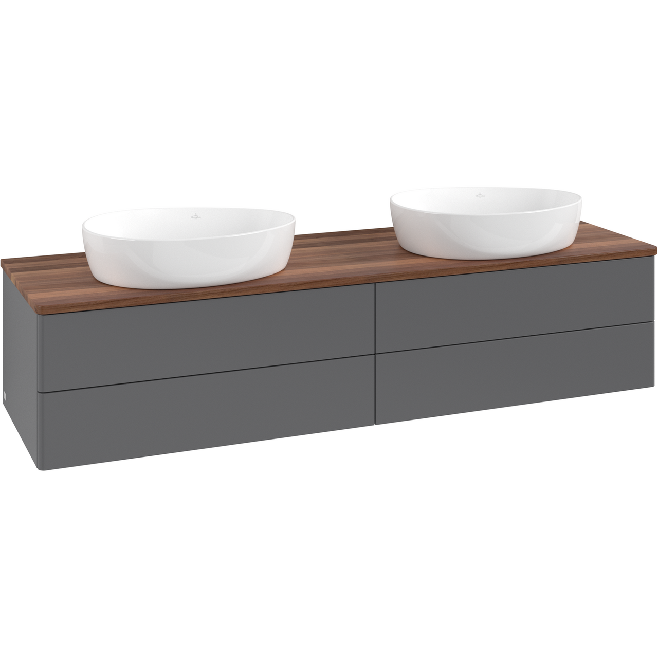 V&B ANTAO SERVANTSKAP 4 SKUFFER GLATT 1600X360X500 FOR 2 SERV. U/KRANHULL M/LYS ANTRASITT/VALNØTT