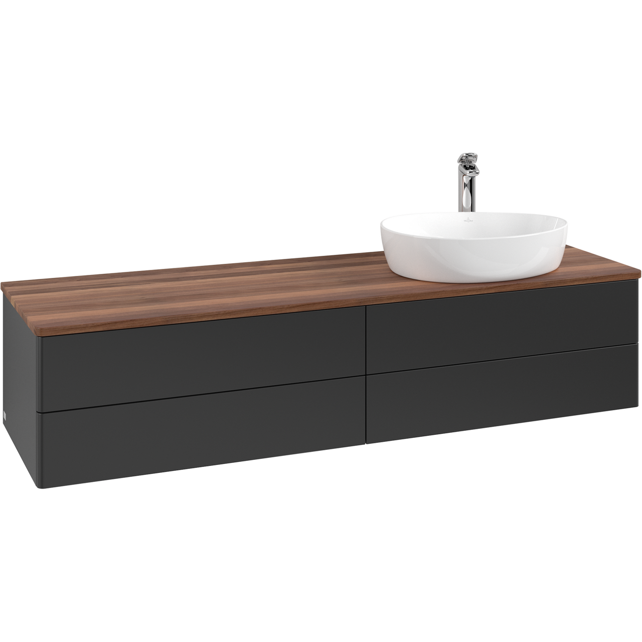V&b antao servantskap 4 skuffer glatt 1600x360x500 høyre m/kranhull m/lys matt sort/valnøtt