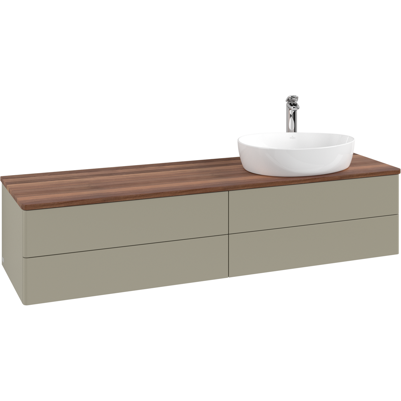 V&b antao servantskap 4 skuffer glatt 1600x360x500 høyre m/kranhull m/lys stengrå/valnøtt