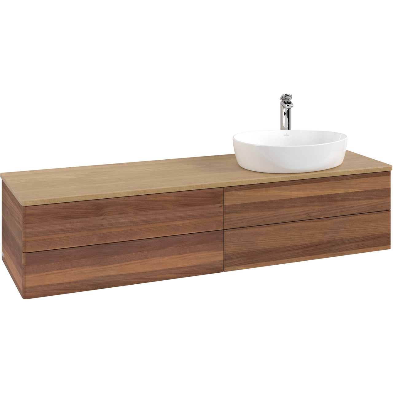V&b antao servantskap 4 skuffer glatt 1600x360x500 høyre m/kranhull m/lys valnøtt/eik
