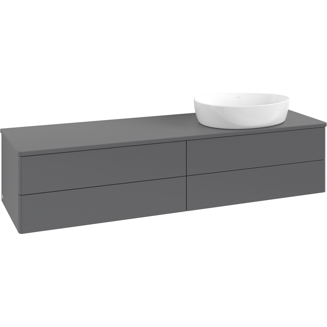 V&B ANTAO SERVANTSKAP 4 SKUFFER GLATT 1600X360X500 HØYRE U/KRANHULL M/LYS ANTRASITT