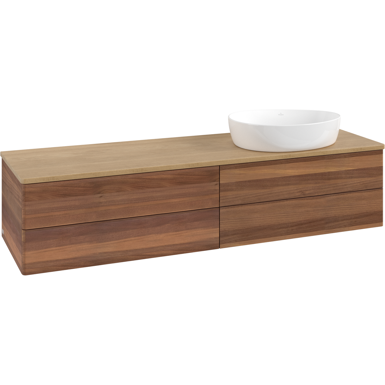V&b antao servantskap 4 skuffer glatt 1600x360x500 høyre u/kranhull m/lys valnøtt/eik