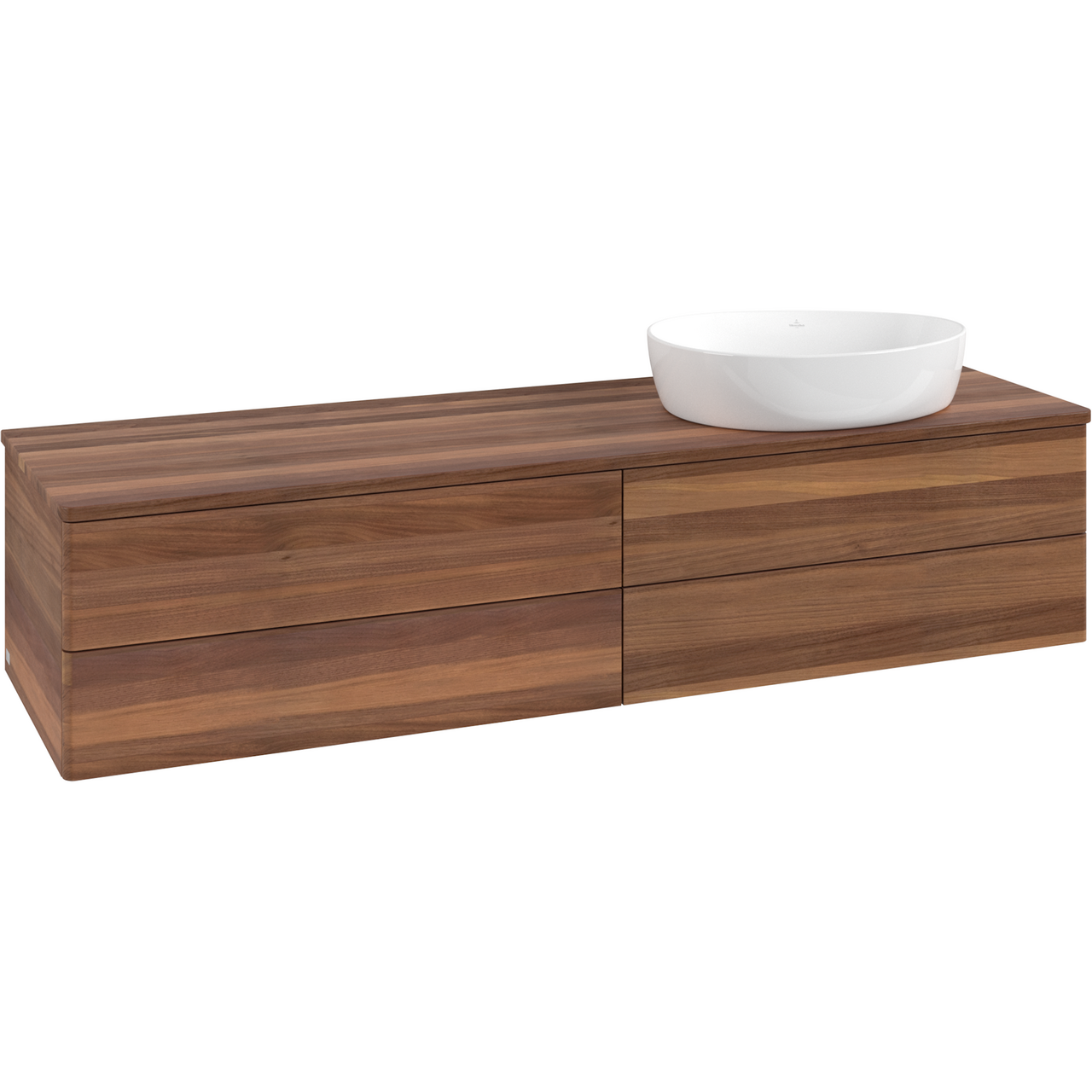 V&b antao servantskap 4 skuffer glatt 1600x360x500 høyre u/kranhull m/lys valnøtt/valnøtt