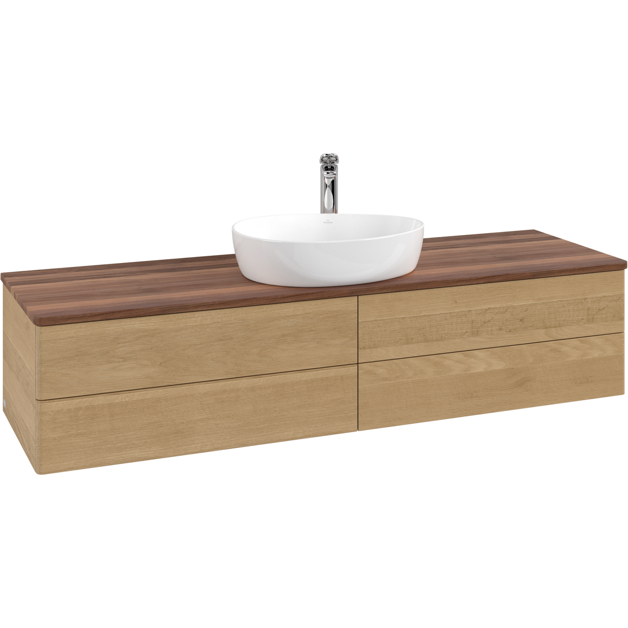 V&b antao servantskap 4 skuffer glatt 1600x360x500 m/kranhull m/lys eik/valnøtt