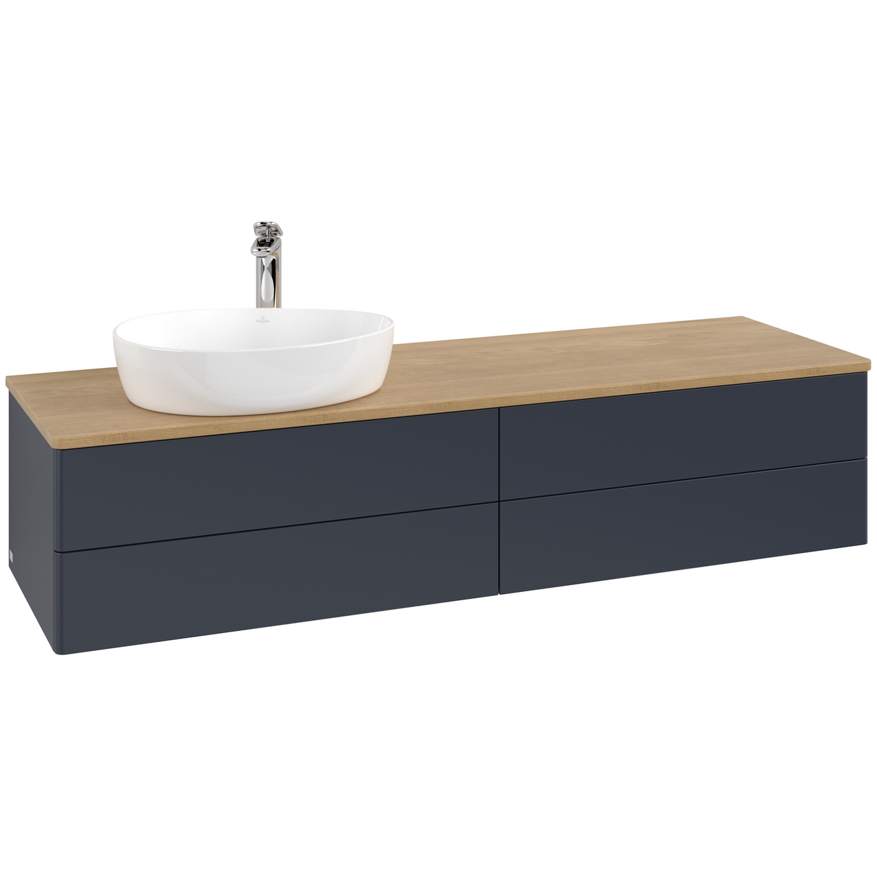 V&b antao servantskap 4 skuffer glatt 1600x360x500 venstre m/kranhull blå/eik