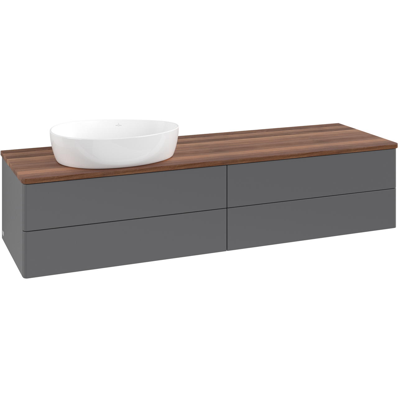 V&b antao servantskap 4 skuffer glatt 1600x360x500 venstre u/kranhull m/lys antrasitt/valnøtt