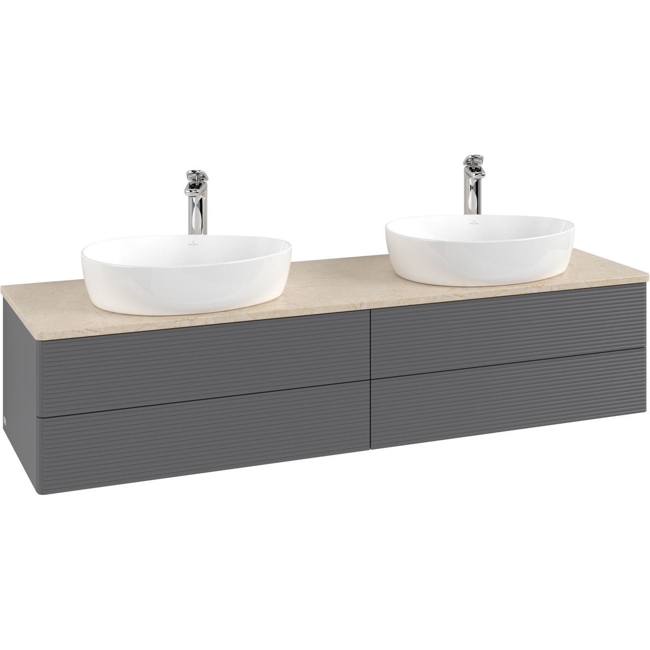 V&B ANTAO SERVANTSKAP 4 SKUFFER RILLET 1600X360X500 FOR 2 SERV. M/KRANHULL M/LYS ANTRASITT/CRÉME