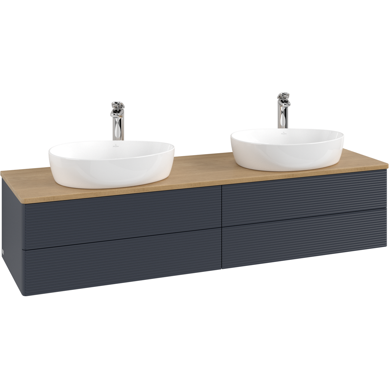 V&b antao servantskap 4 skuffer rillet 1600x360x500 for 2 serv. m/kranhull m/lys blå/eik