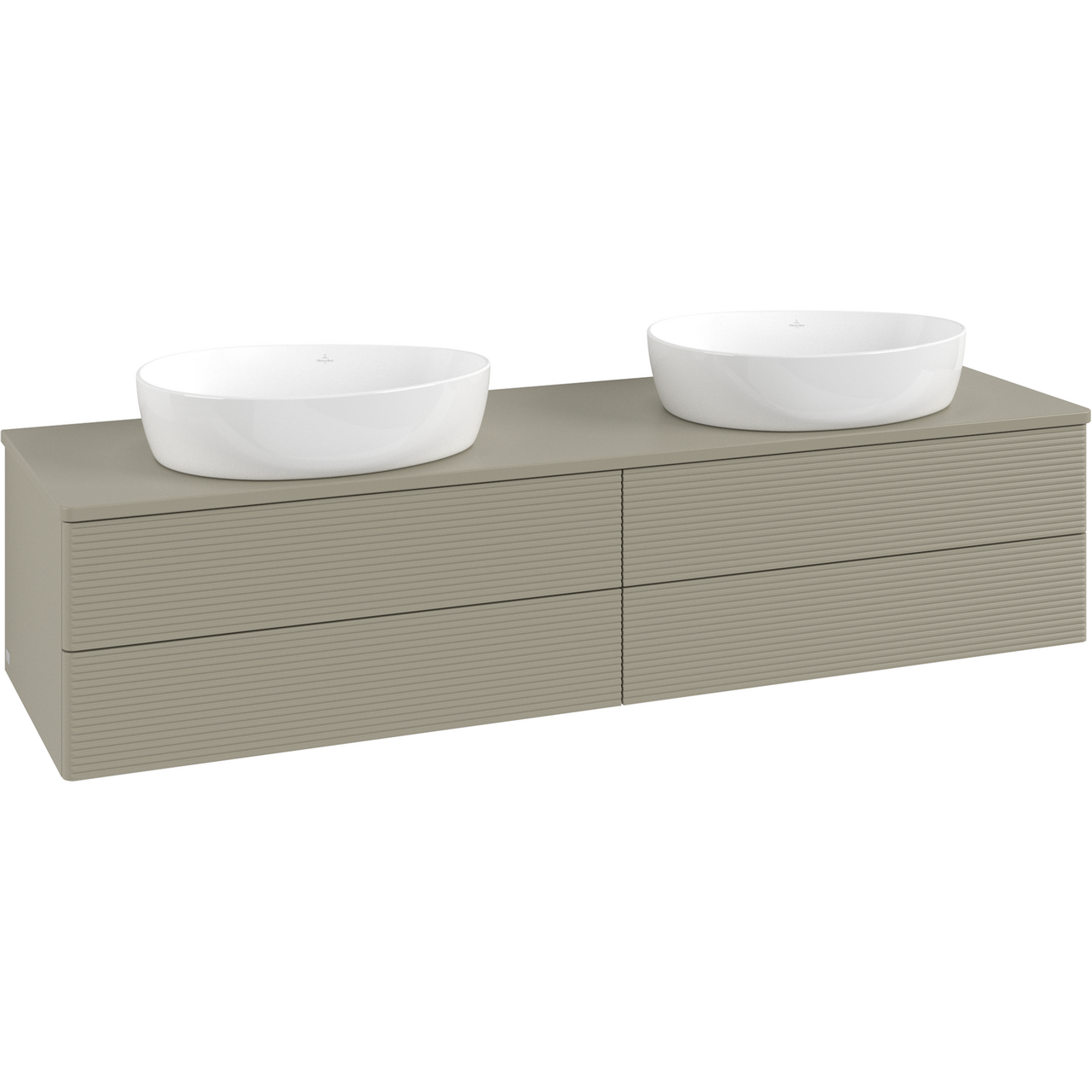 V&b antao servantskap 4 skuffer rillet 1600x360x500 for 2 serv. m/kranhull m/lys stengrå