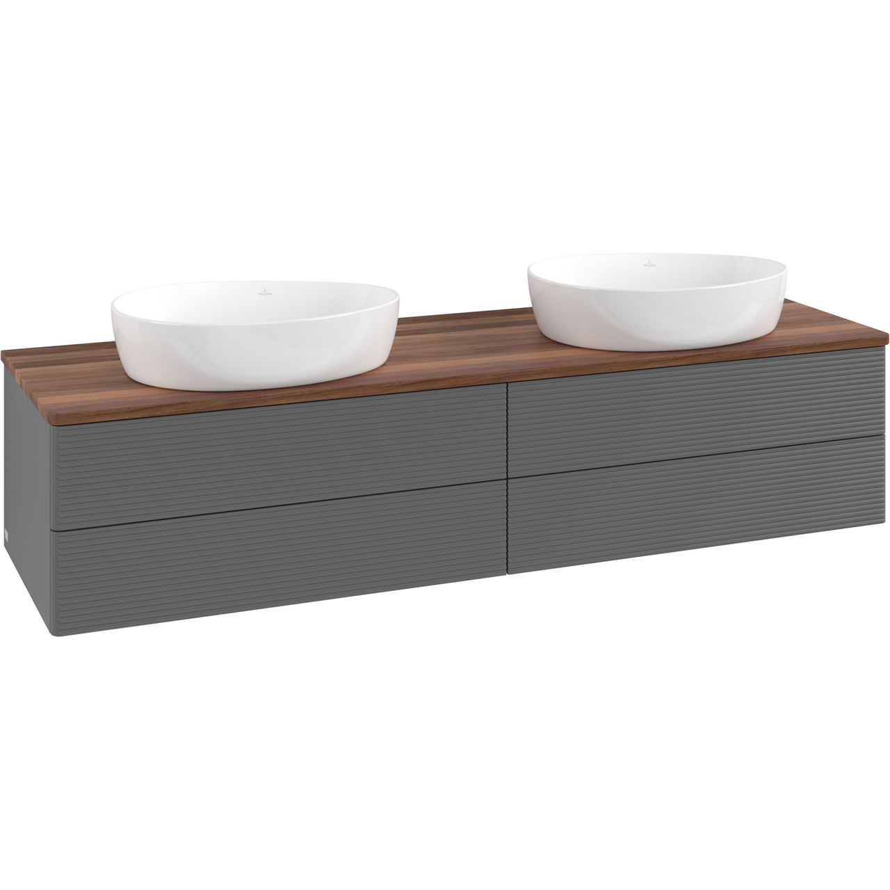 V&b antao servantskap 4 skuffer rillet 1600x360x500 for 2 serv. u/kranhull m/lys antrasitt/valnøtt