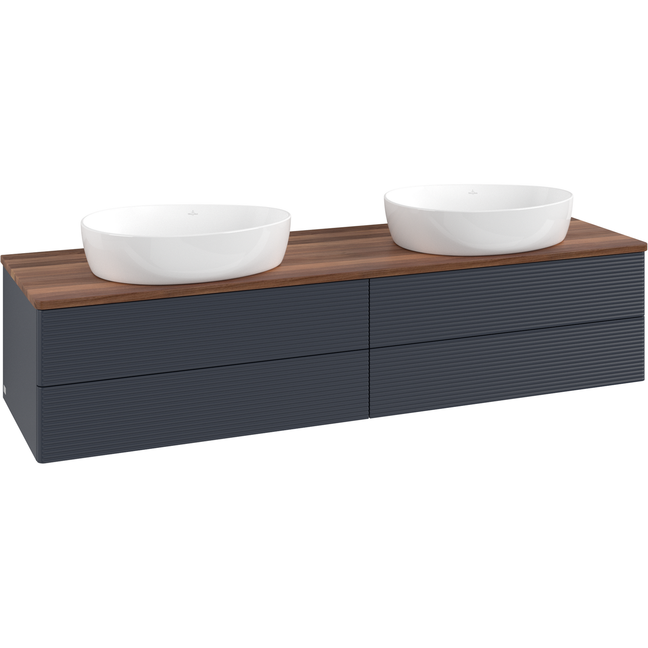 V&b antao servantskap 4 skuffer rillet 1600x360x500 for 2 serv. u/kranhull m/lys blå/valnøtt