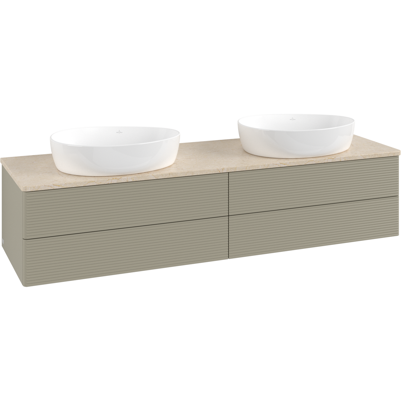 V&b antao servantskap 4 skuffer rillet 1600x360x500 for 2 serv. u/kranhull m/lys stengrå/créme