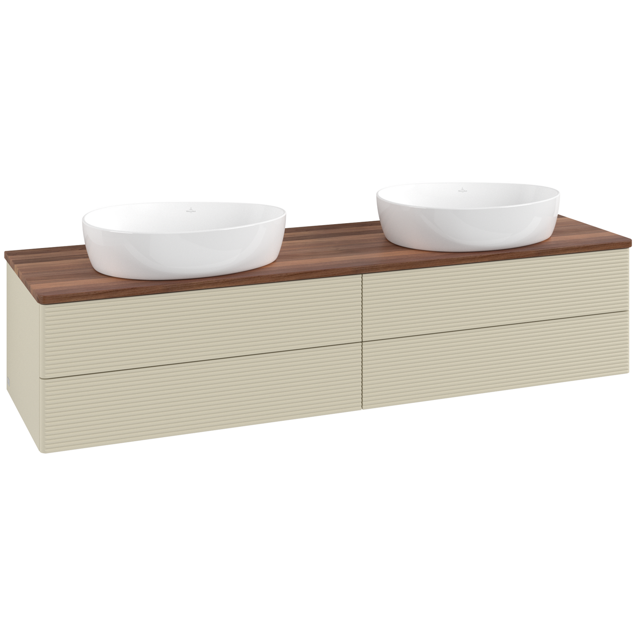 V&b antao servantskap 4 skuffer rillet 1600x360x500 for 2 serv. u/kranhull silkegrå/valnøtt
