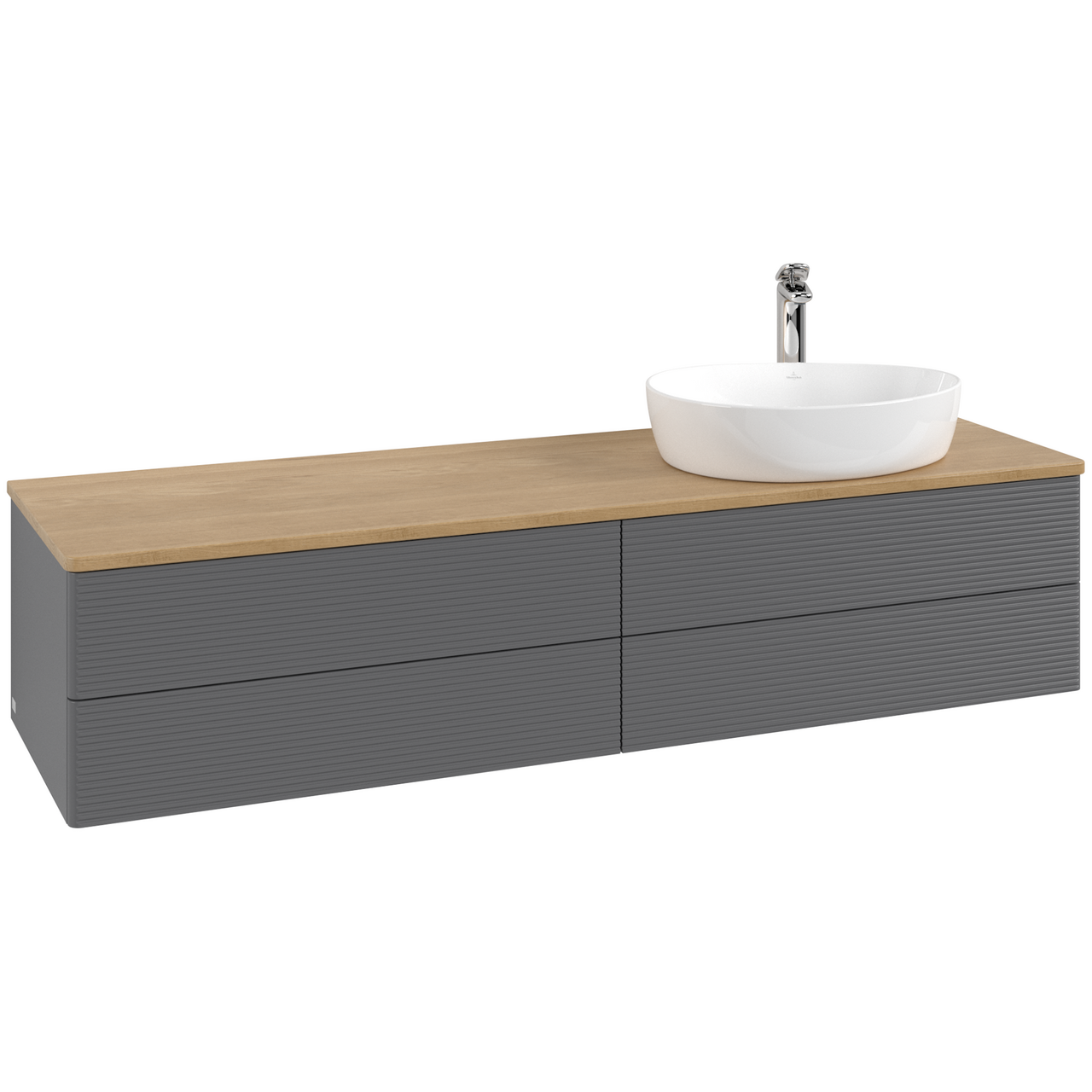 V&b antao servantskap 4 skuffer rillet 1600x360x500 høyre m/kranhull antrasitt/eik