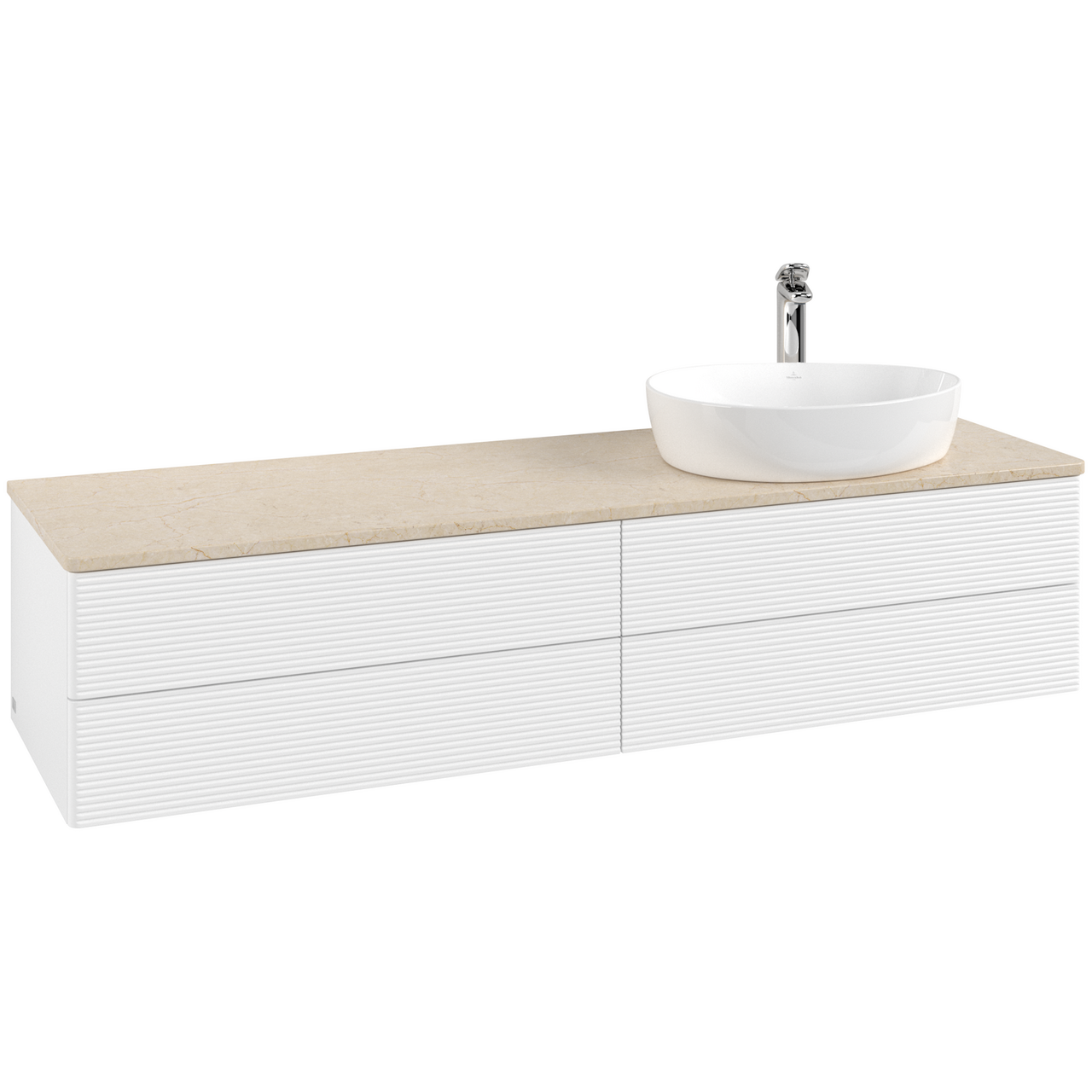 V&b antao servantskap 4 skuffer rillet 1600x360x500 høyre m/kranhull matt hvit/créme