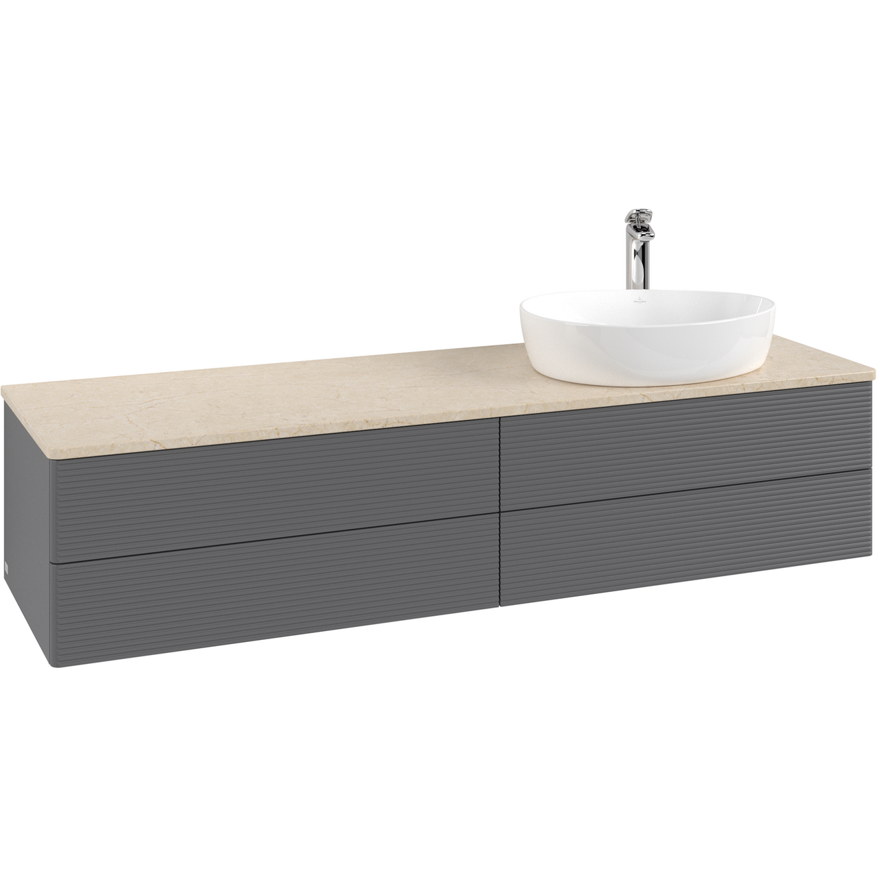 V&b antao servantskap 4 skuffer rillet 1600x360x500 høyre m/kranhull m/lys antrasitt/créme