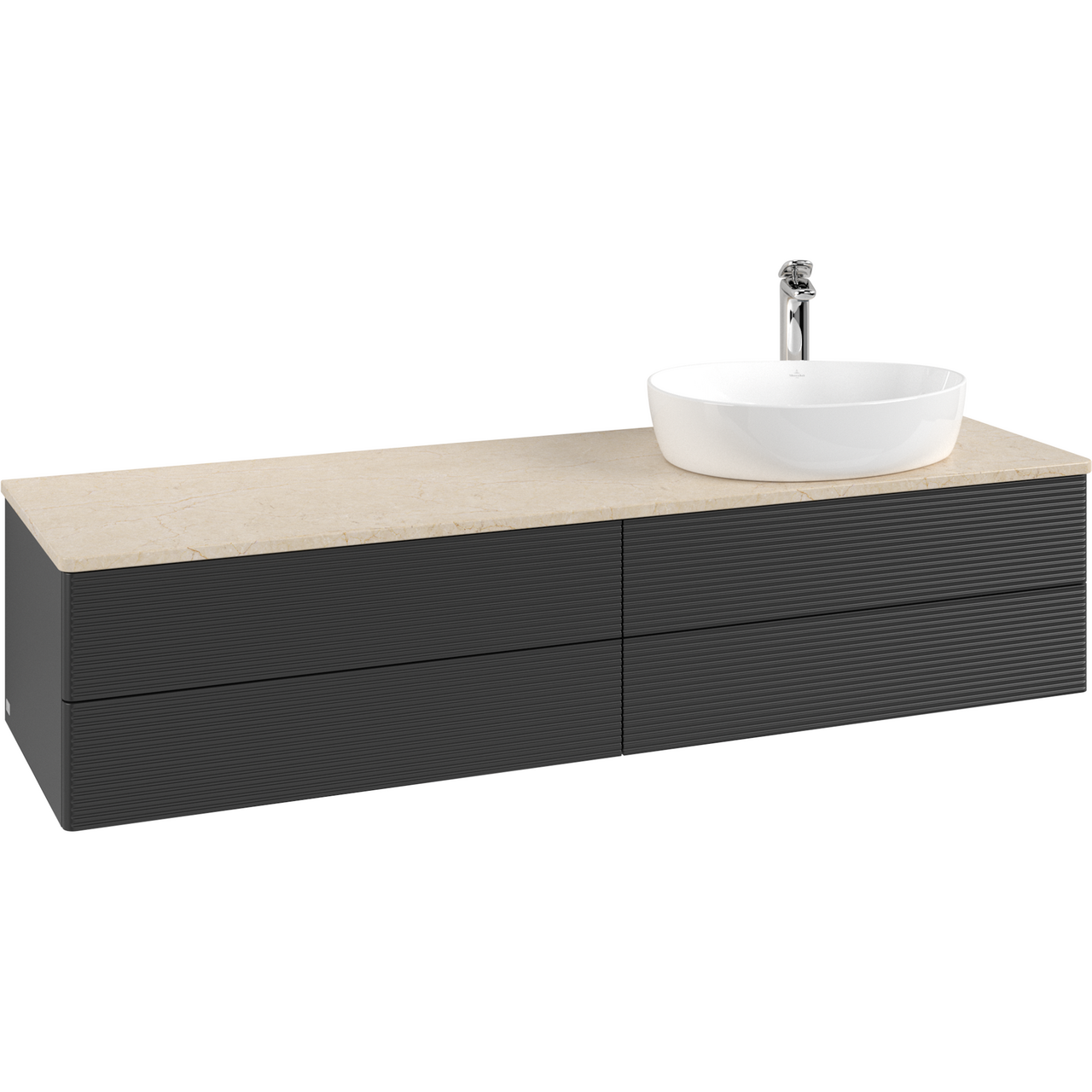 V&b antao servantskap 4 skuffer rillet 1600x360x500 høyre m/kranhull m/lys matt sort/créme
