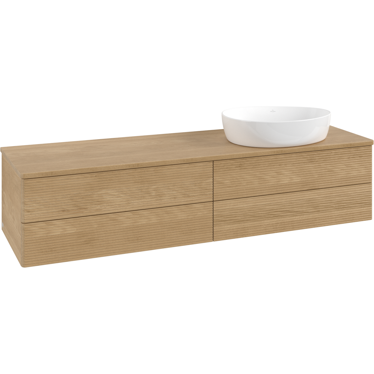 V&b antao servantskap 4 skuffer rillet 1600x360x500 høyre u/kranhull m/lys eik