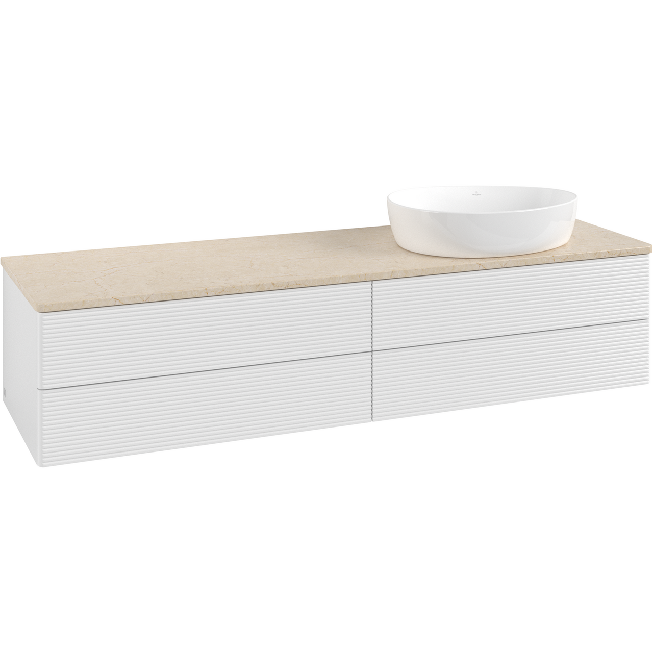 V&B ANTAO SERVANTSKAP 4 SKUFFER RILLET 1600X360X500 HØYRE U/KRANHULL M/LYS HVIT/CRÉME
