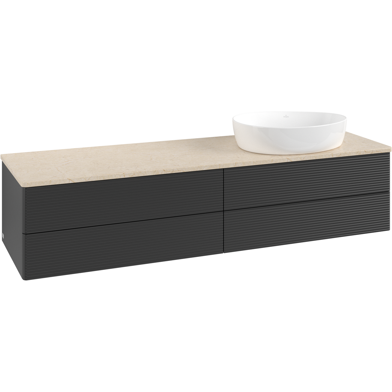 V&b antao servantskap 4 skuffer rillet 1600x360x500 høyre u/kranhull m/lys matt sort/créme