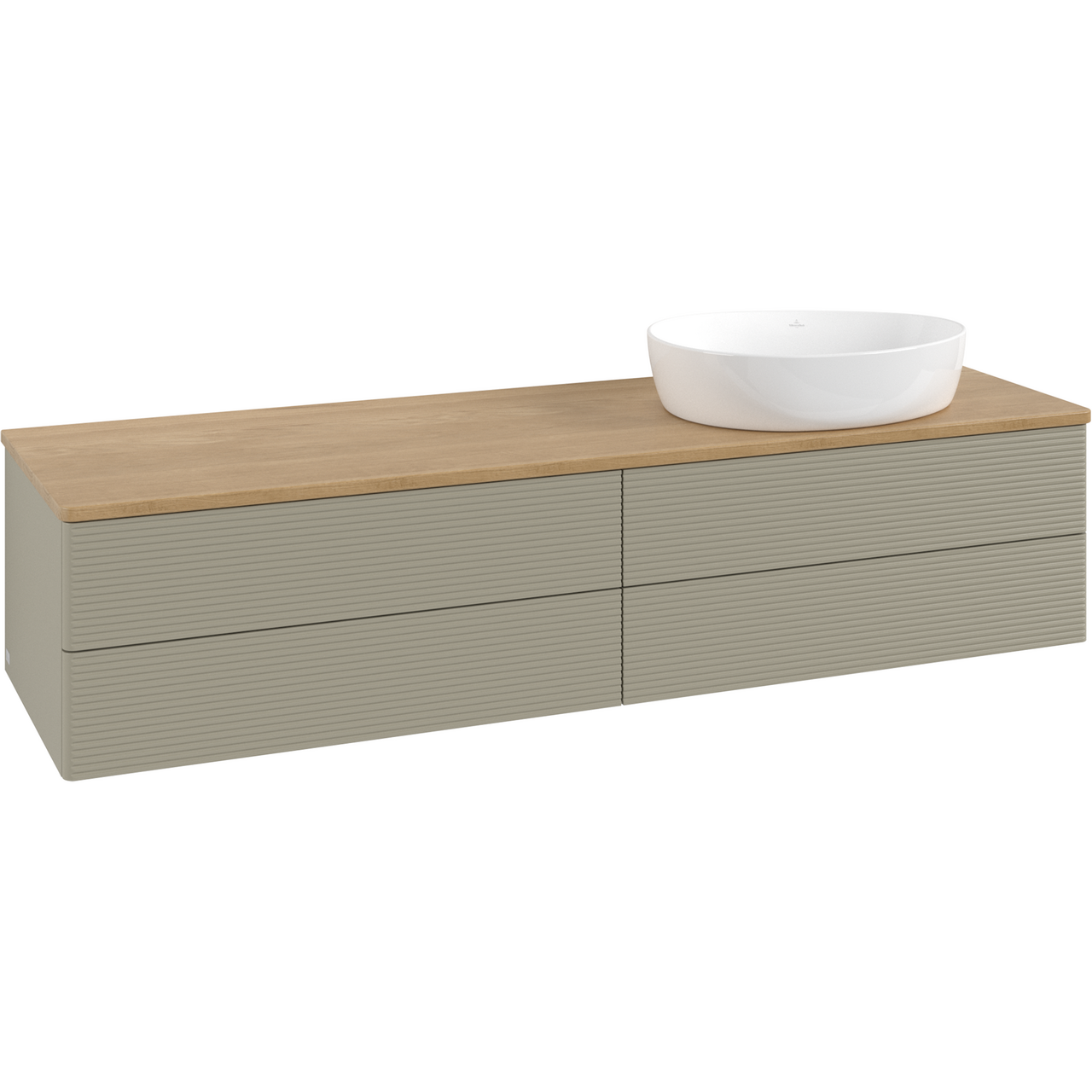 V&b antao servantskap 4 skuffer rillet 1600x360x500 høyre u/kranhull m/lys stengrå/eik