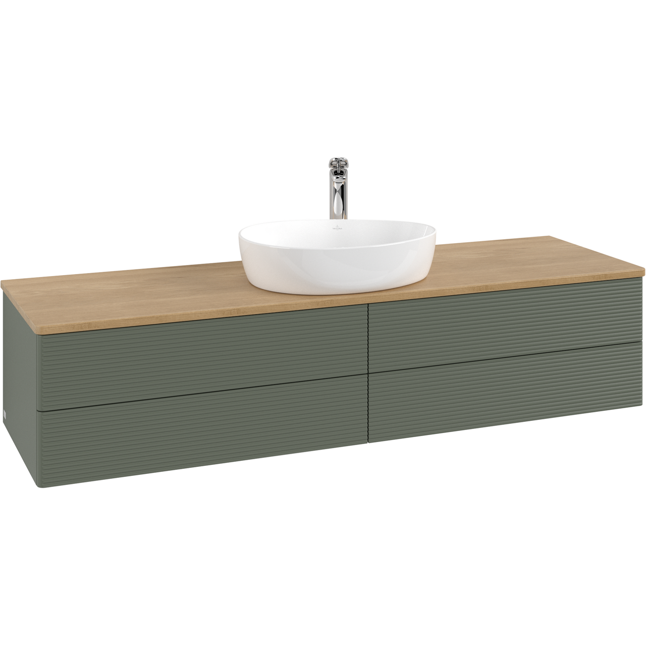 V&b antao servantskap 4 skuffer rillet 1600x360x500 m/kranhull m/lys grønn/eik