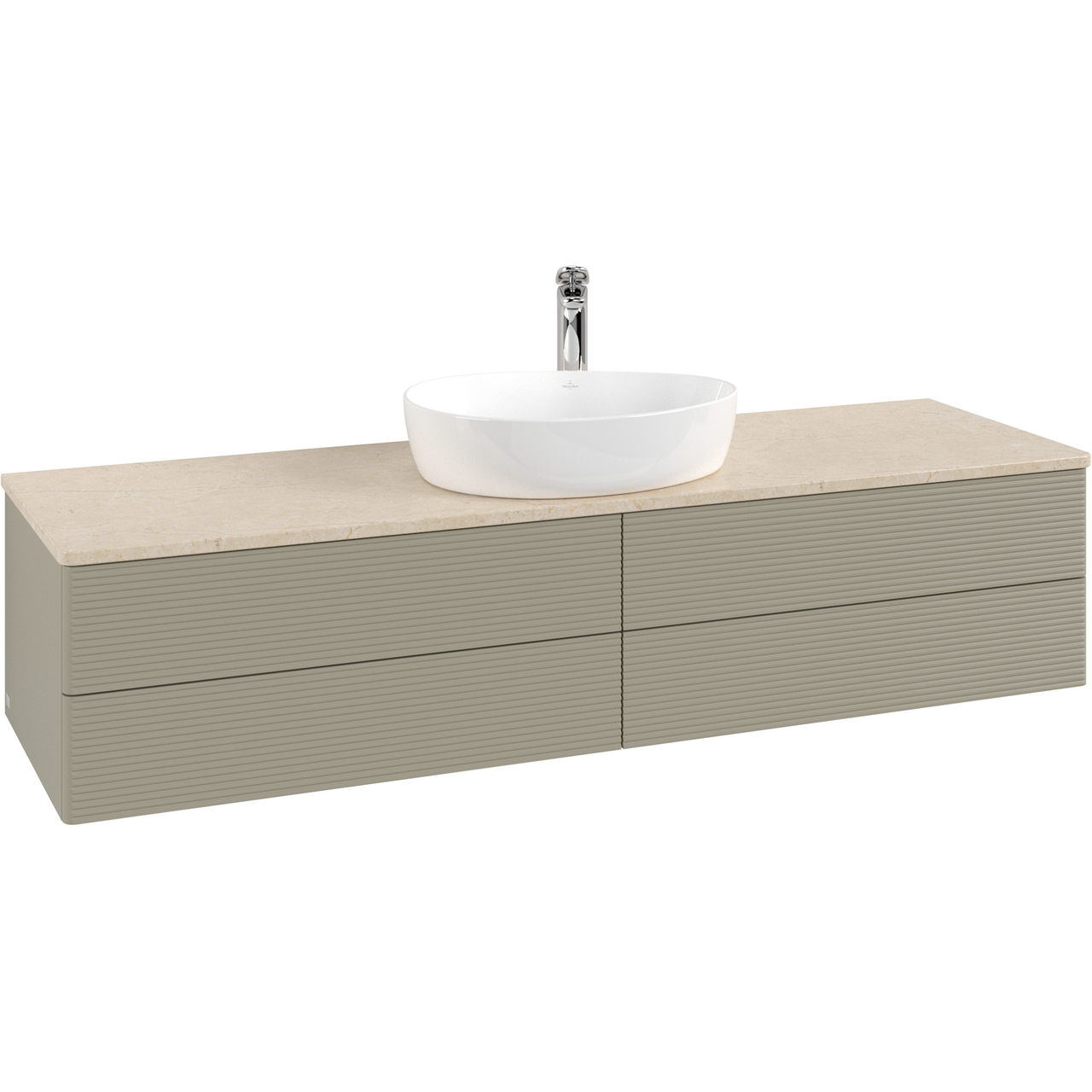 V&b antao servantskap 4 skuffer rillet 1600x360x500 m/kranhull m/lys stengrå/créme