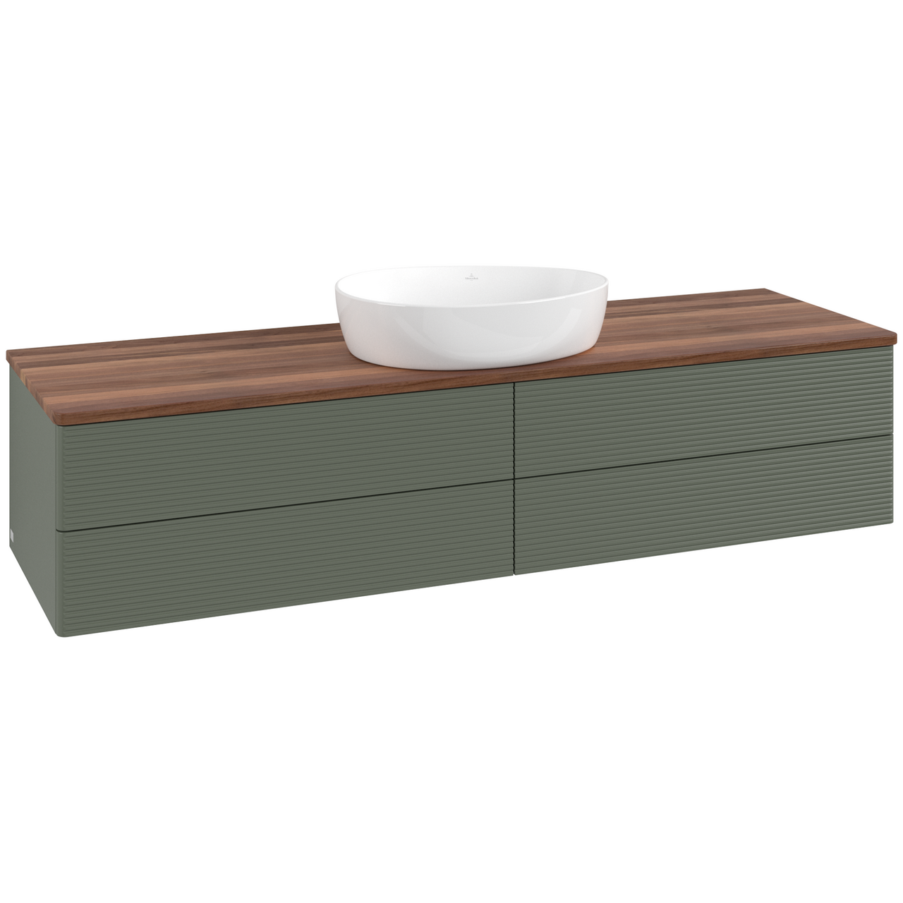 V&b antao servantskap 4 skuffer rillet 1600x360x500 u/kranhull grønn/valnøtt