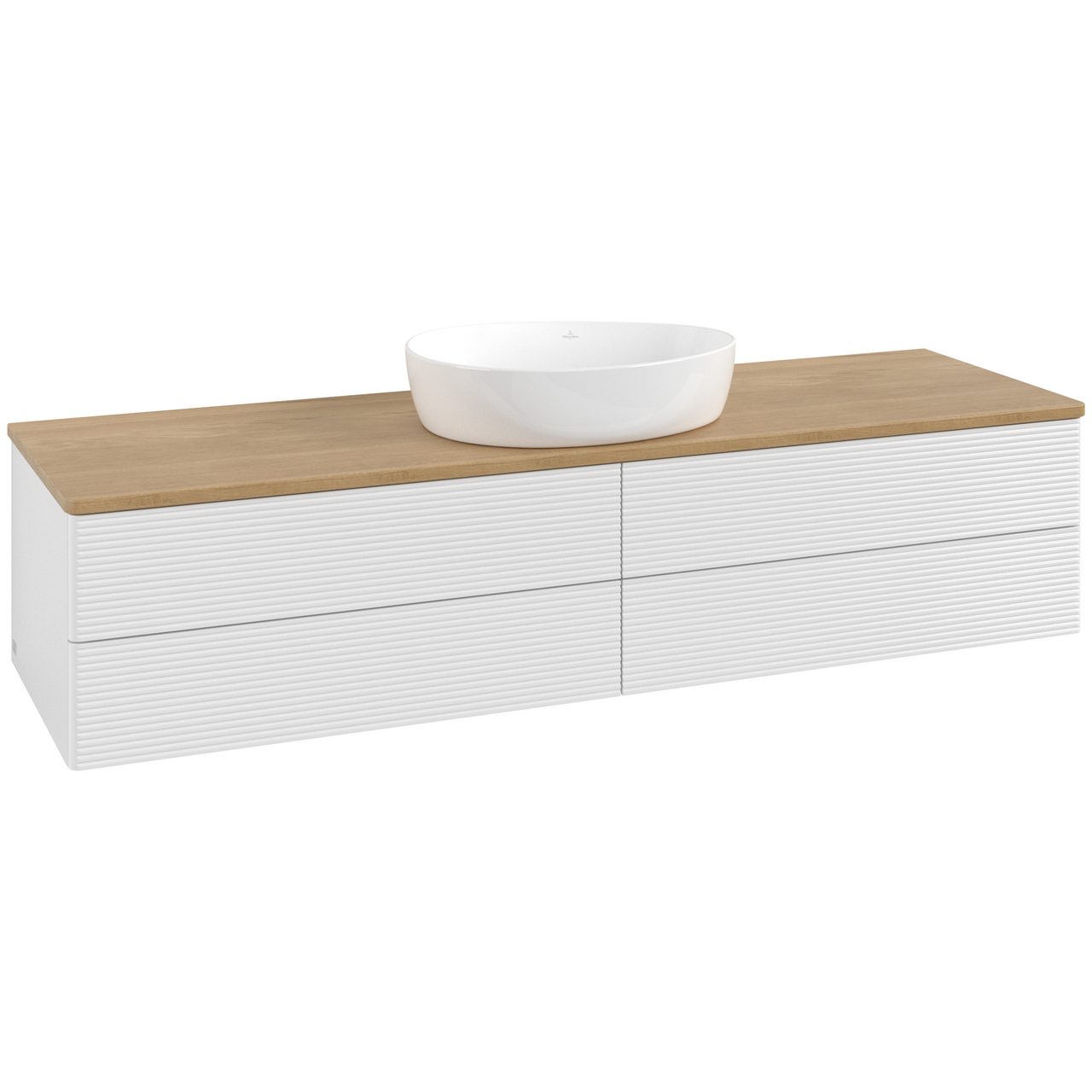 V&b antao servantskap 4 skuffer rillet 1600x360x500 u/kranhull hvit/eik