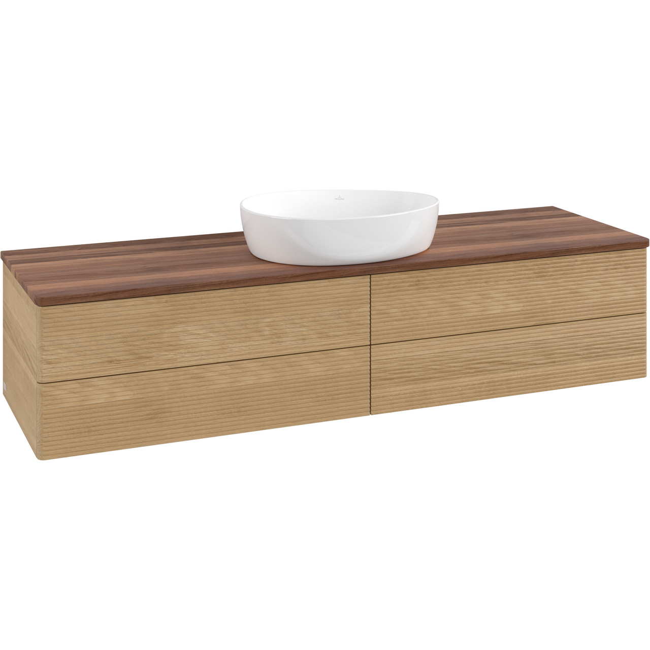 V&b antao servantskap 4 skuffer rillet 1600x360x500 u/kranhull m/lys eik/valnøtt