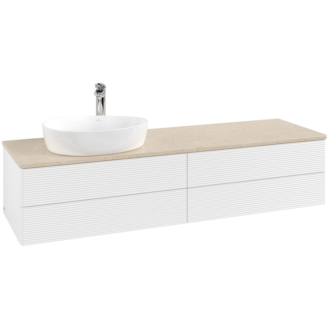 V&b antao servantskap 4 skuffer rillet 1600x360x500 venstre m/kranhull matt hvit/créme