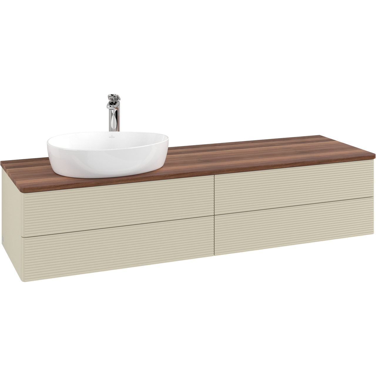 V&b antao servantskap 4 skuffer rillet 1600x360x500 venstre m/kranhull m/lys silkegrå/valnøtt