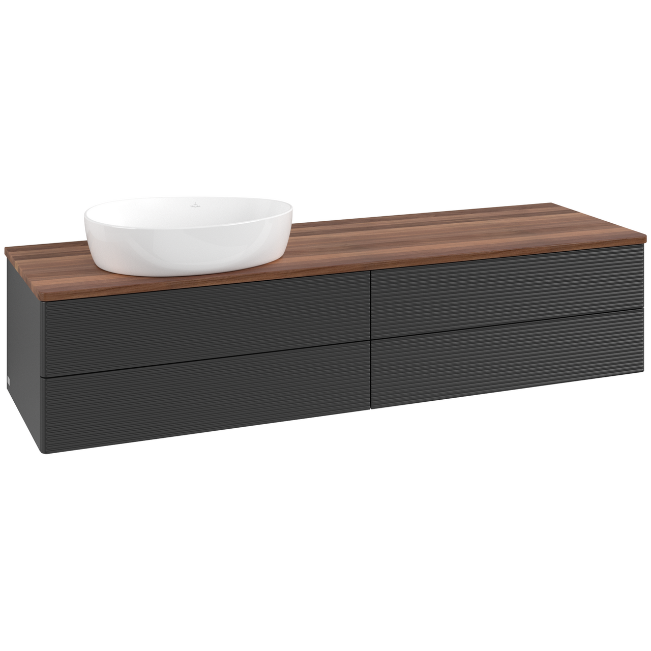 V&b antao servantskap 4 skuffer rillet 1600x360x500 venstre u/kranhull matt sort/valnøtt