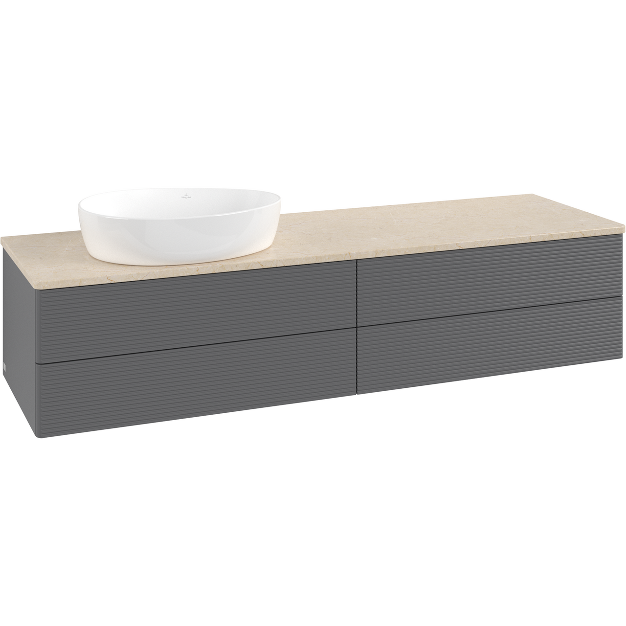 V&b antao servantskap 4 skuffer rillet 1600x360x500 venstre u/kranhull m/lys antrasitt/créme