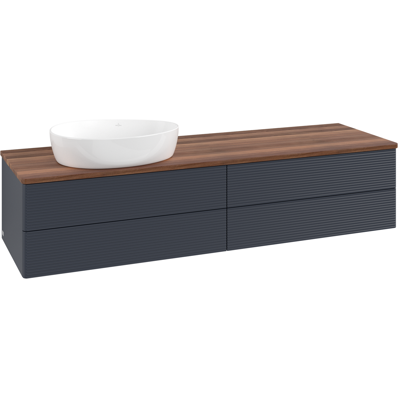 V&b antao servantskap 4 skuffer rillet 1600x360x500 venstre u/kranhull m/lys blå/valnøtt