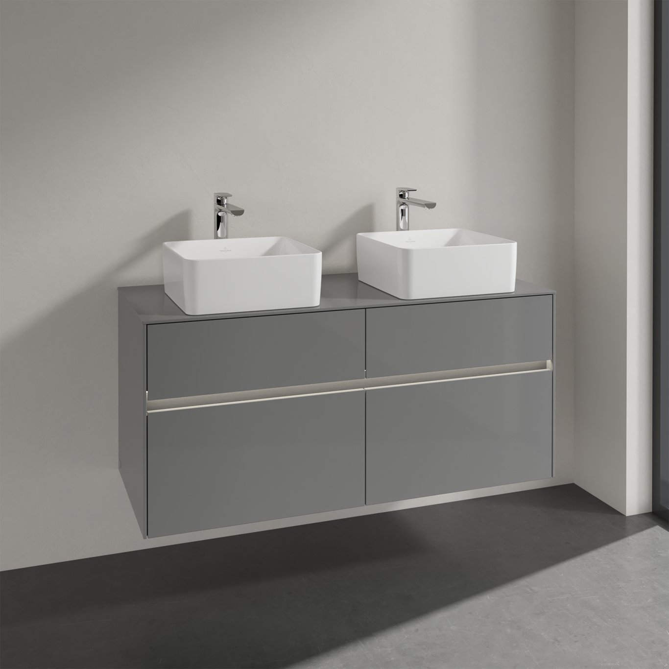 V&b collaro servantskap 120 m/lys for 2 servanter m/4 skuffer grå høyglans