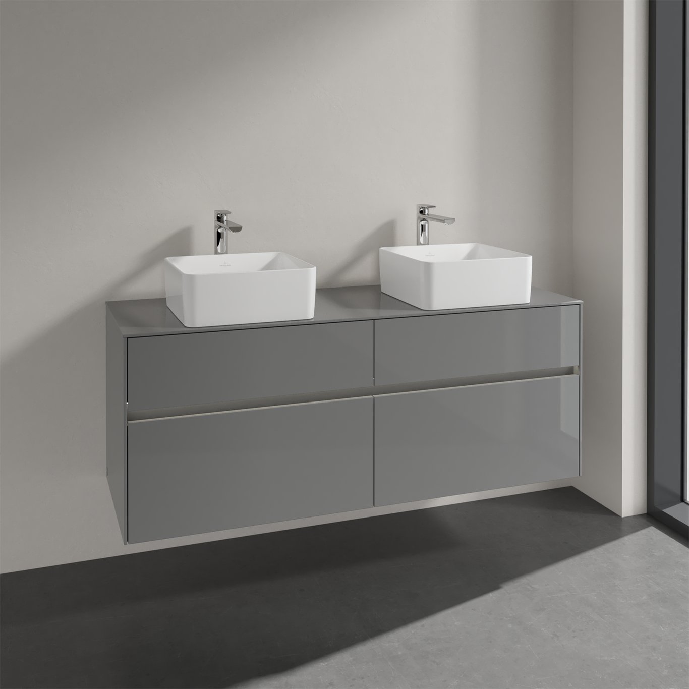 V&b collaro servantskap 140 m/lys for 2 servanter m/4 skuffer grå høyglans