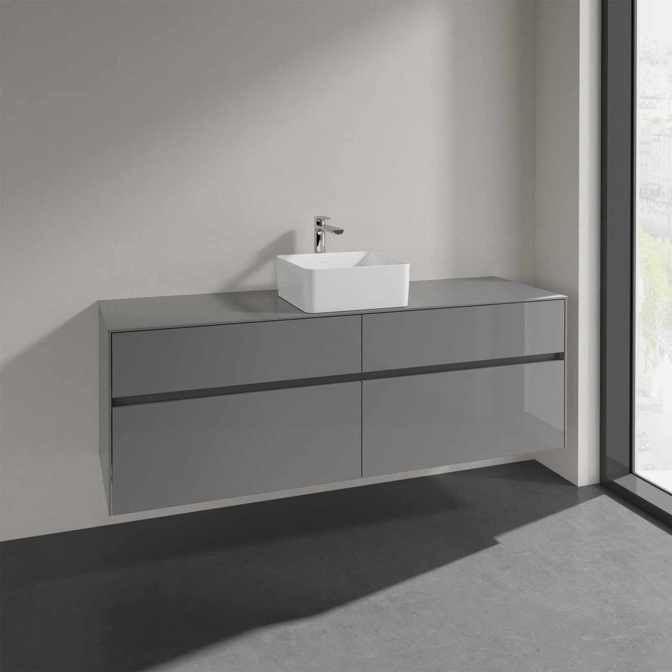 V&b collaro servantskap 160 for servant midt m/4 skuffer grå høyglans