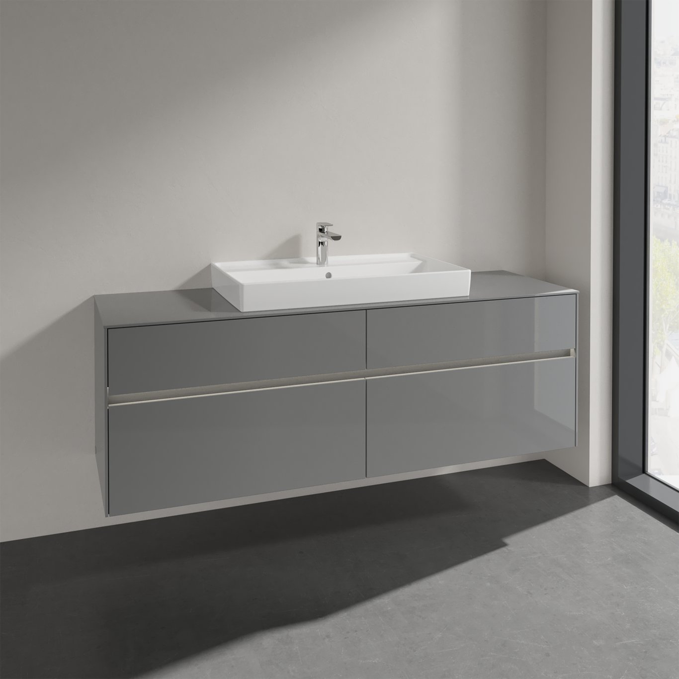 V&b collaro servantskap 160 m/lys for servant midt 80 cm m/4 skuffer grå høyglans