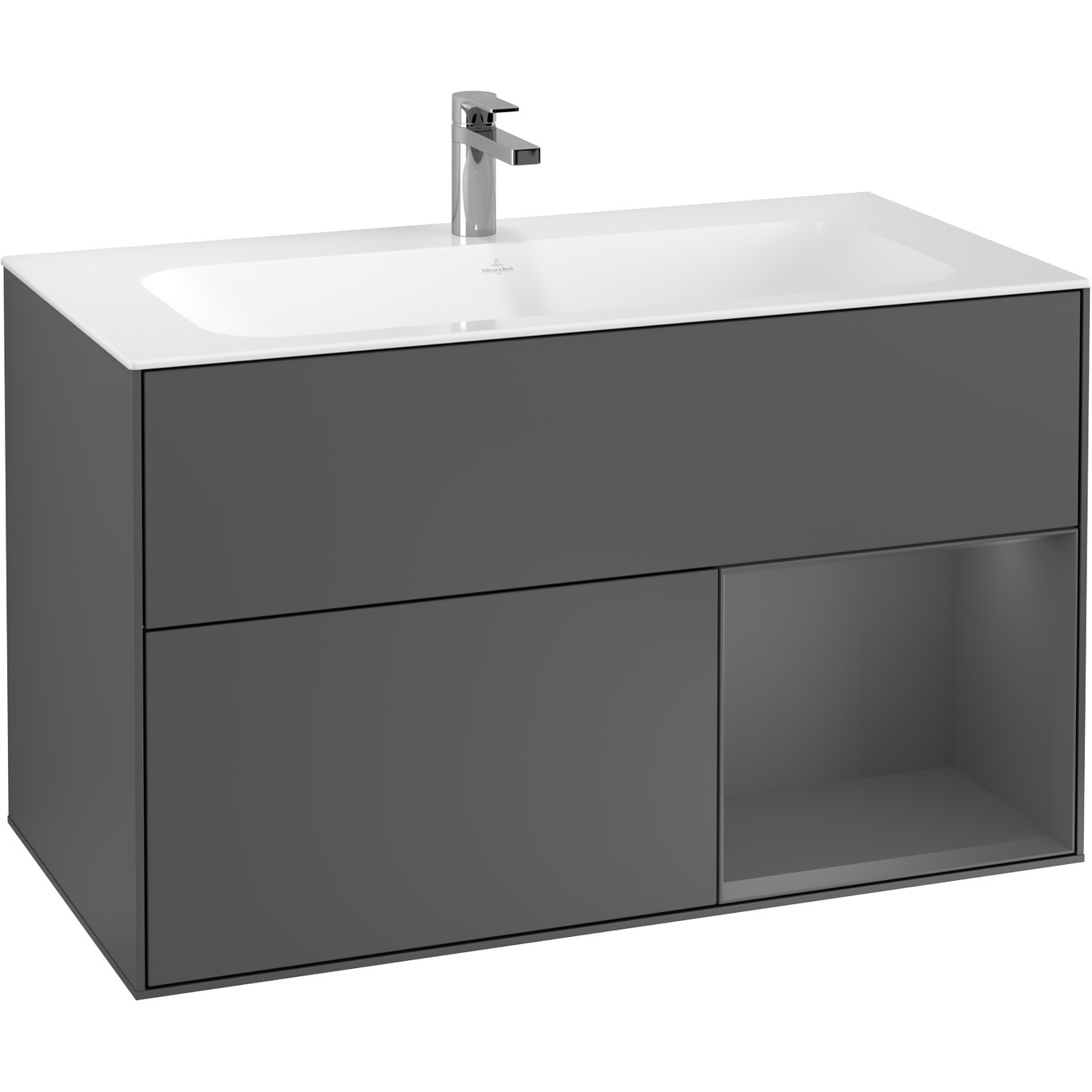 V&B FINION SERVANTSKAP 100 ANTRASITT MATT LAKK EMOTION-LYS, HØYRESTILT ANTRASITTGRÅ HYLLE