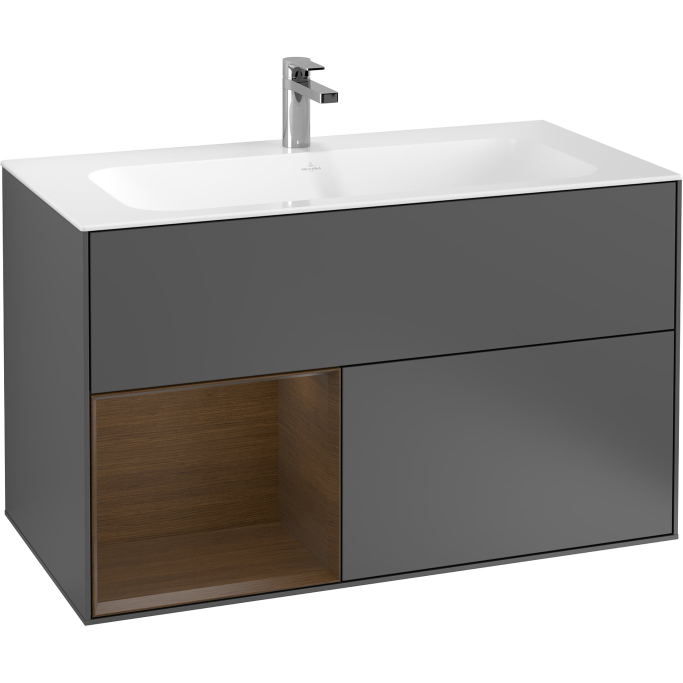 V&B FINION SERVANTSKAP 100 ANTRASITT MATT LAKK EMOTION-LYS, VENSTRESTILT VALNØTTHYLLE