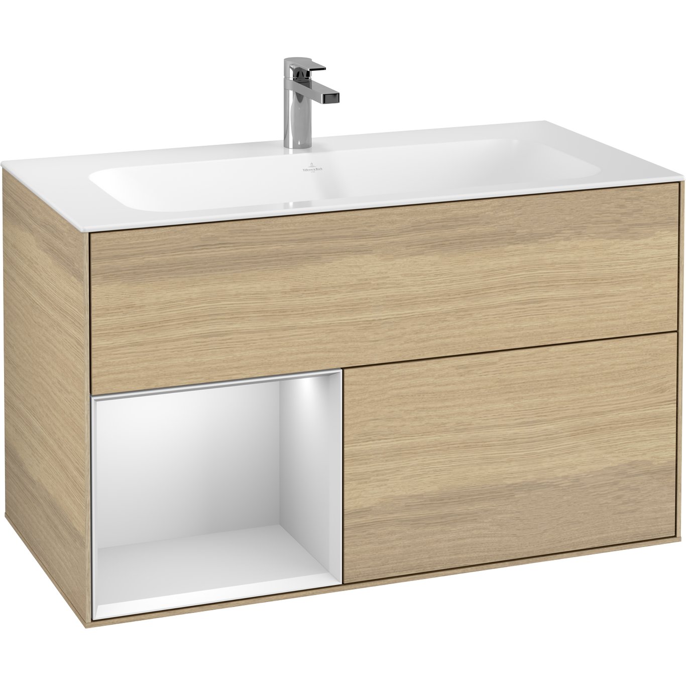 V&b finion servantskap 100 eik finér emotion-lys venstrestilt hvitmatt hylle