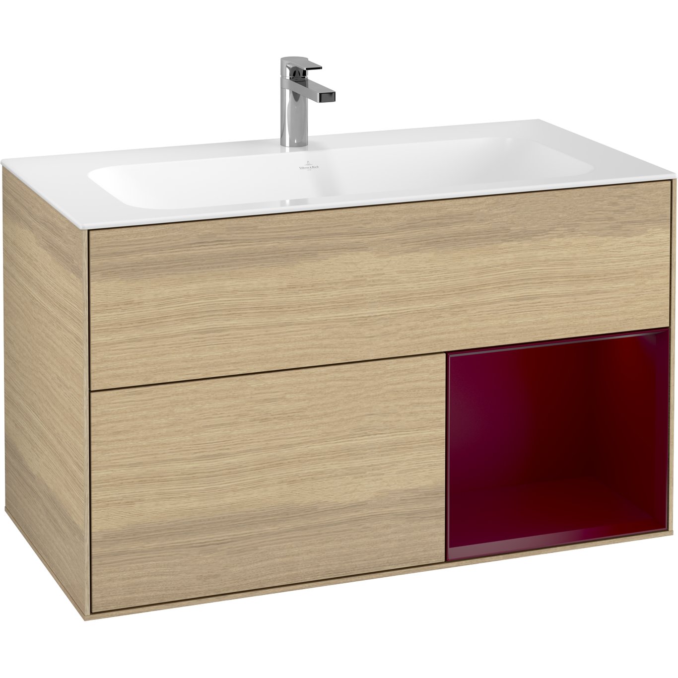 V&b finion servantskap 100 eik finér m/lys høyrestilt peonrød hylle
