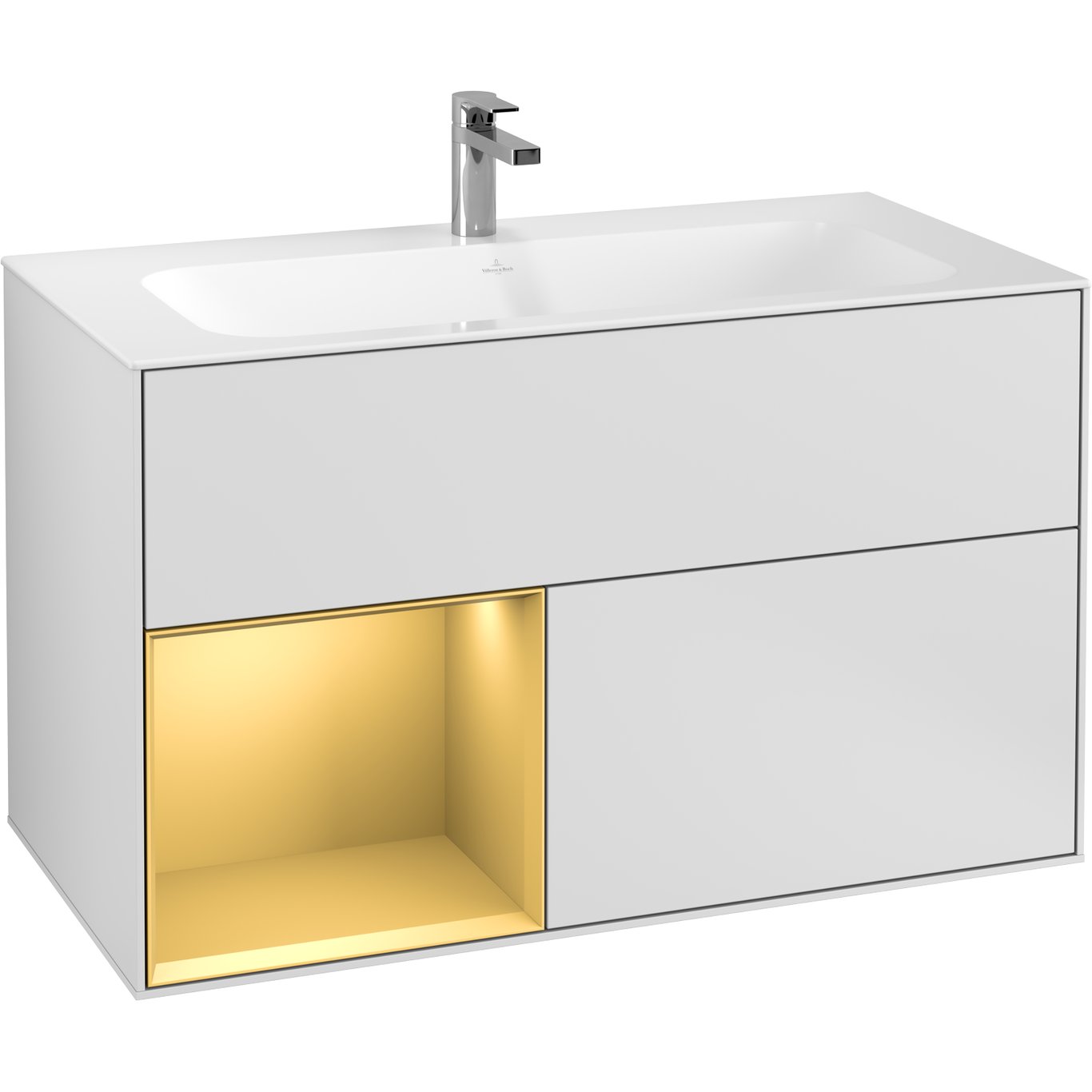 V&B FINION SERVANTSKAP 100 HVIT MATT LAKK EMOTION-LYS, VENSTRESTILT MATT GULL HYLLE