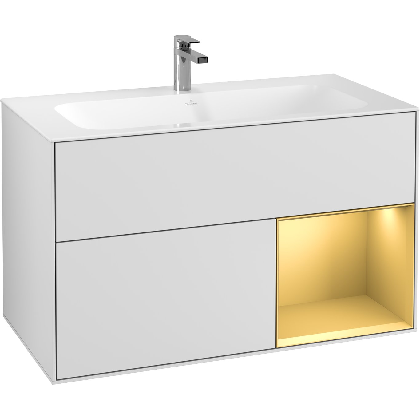 V&B FINION SERVANTSKAP 100 HVIT MATT LAKK M/LYS HØYRESTILT MATT GULL HYLLE