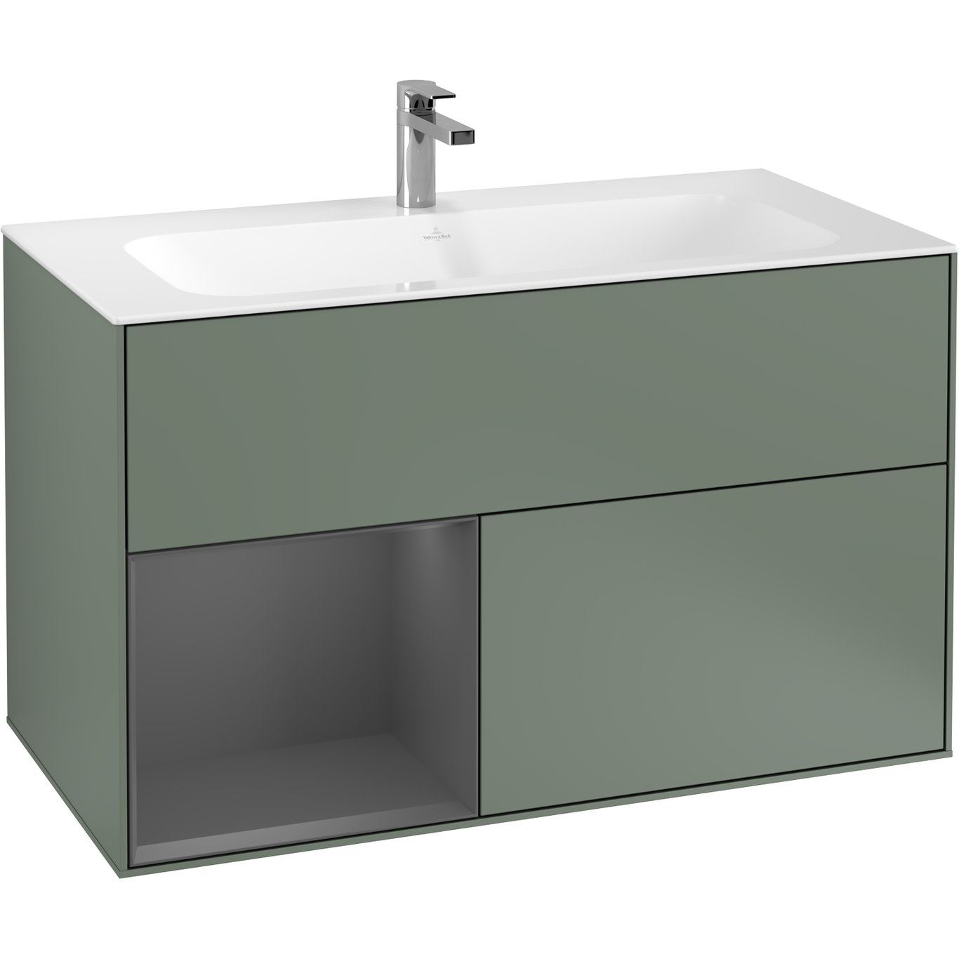 V&B FINION SERVANTSKAP 100 OLIVEN MATT LAKK M/LYS, VENSTRESTILT ANTRASITTGRÅ HYLLE