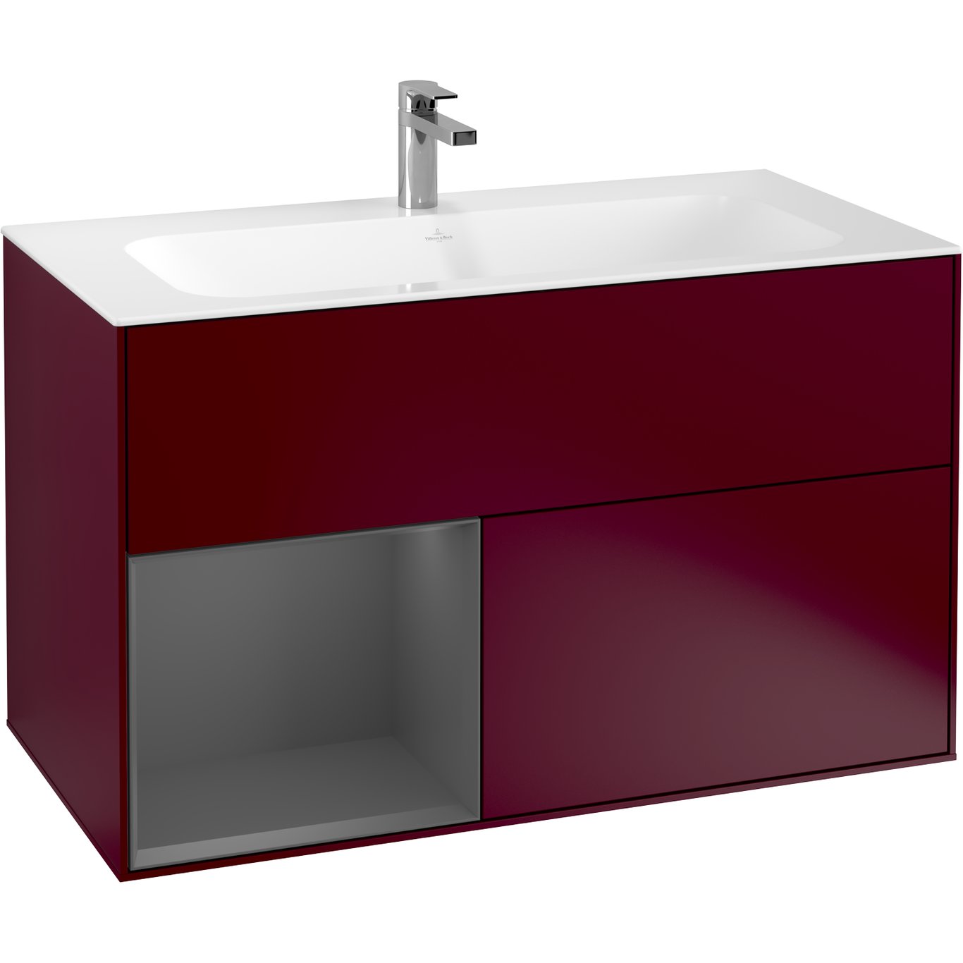 Finion fra Villeroy & Boch er en stilren baderomsserie, som skaper en helhet på baderommet. Dette servantskapet i Finion-serien har rette, rene linjer, to skuffer og en åpen venstrestilt hylle med dimbart LED-lys. Servantskapet fås i et bredt utvalg av farger, så du kan velge fargen du ønsker.