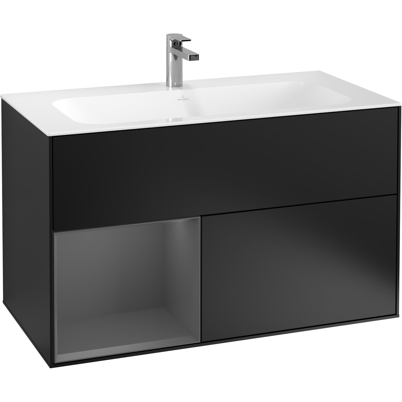 V&B FINION SERVANTSKAP 100 SORT MATT LAKK EMOTION-LYS, VENSTRESTILT ANTRASITTGRÅ HYLLE